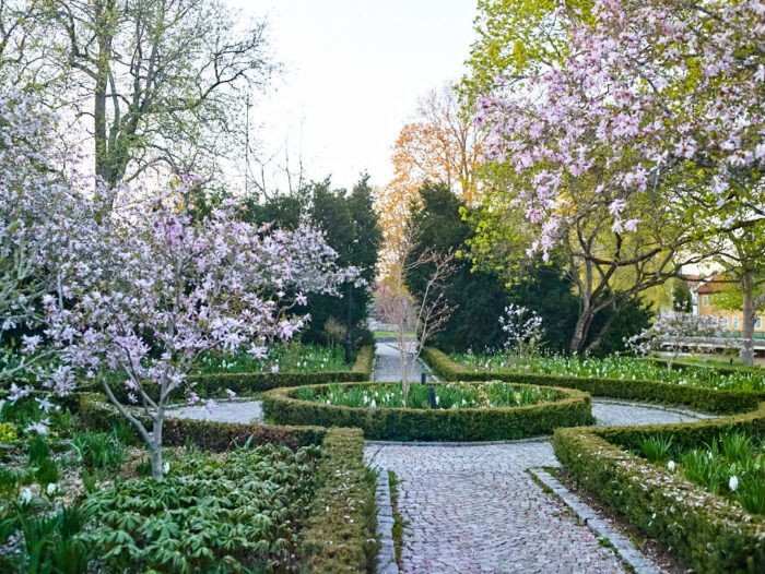 Klosterparken i Enköping, ett mästerverk. De rosa magnoliorna är ’Leonard Messel’. Rikblommande, tåliga och snyggast. Mer om Enköpings parker, magnolior och andra växter i VÄXTKOMPOSITION. Bild från 13 maj 2023.