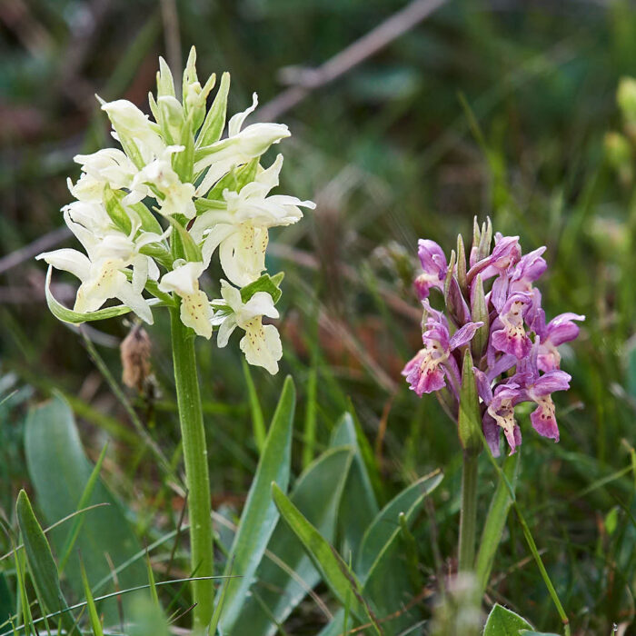 Orkidén Adam och Eva (Dactylorhiza sambucina) har två blomfärger, en gulvit och en rödlila. Genetiken bakom verkar inte känd. Typisk Östersjöväxt, gillar väldränerat, men den här bilden är från Angarnsjöängens naturreservat i Vallentuna den 14 maj 2021.