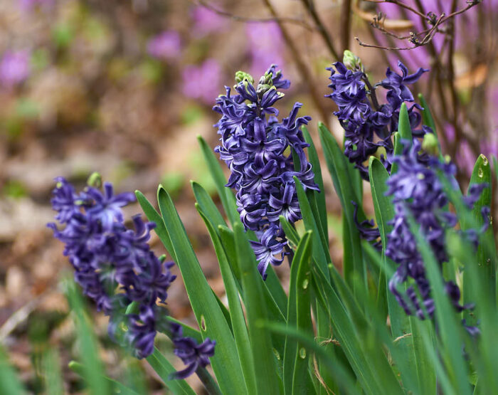 Hyacinter anses inte alltid så långlivade och passar kanske bäst i typ Skåne. Å den andra sidan har jag personligen lyckats hålla liv i några flera år ända upp i Mellannorrlands inland. Mer finns till exempel i VÅRLÖKAR. Bilden är från Skolparken i Enköping den 16 maj 2006.