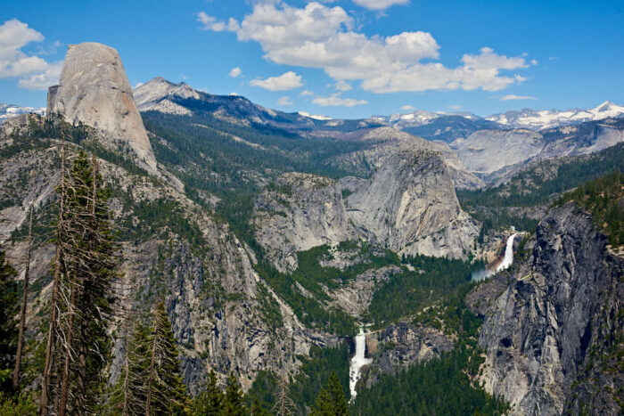 År 1865 samlades en kommission i Yosemite under ledning av representanthusets talman Schuyler Colfax. Där läste Olmsted upp den rapport som blev världens de facto första nationalparksplan. Vyn över Vernal och Nevada falls beskrevs som ett ständigt föränderligt konstverk. Bild från den 19 juni 2019. Mer finns att läsa i Olmsted – mannen som skapade parker.