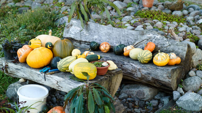 Prydnadspumpor odlar Sveriges, enligt mig, skickligaste grönsaksodlare Börje Remstam för deras skönhets skull. Allt brukas ekologiskt, han var pionjär både på odling utan grävning och med biokol. Bild den 4 september 2010 från hans hem i Eskilstunatrakten. Mer om Börjes odlande i Frodigt utan spade